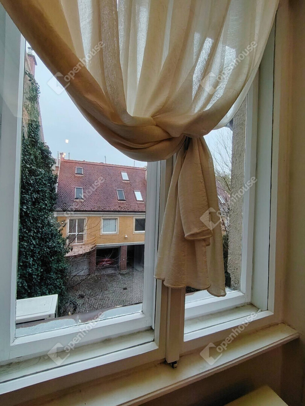 Az ablak a napfényes, nyugati fekvésű udvarra néz, így a belváros közelsége ellenére csendes, békés tér várja az új tulajdonost.