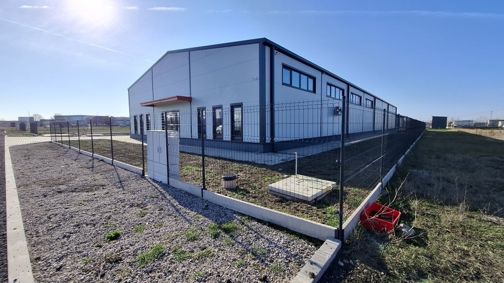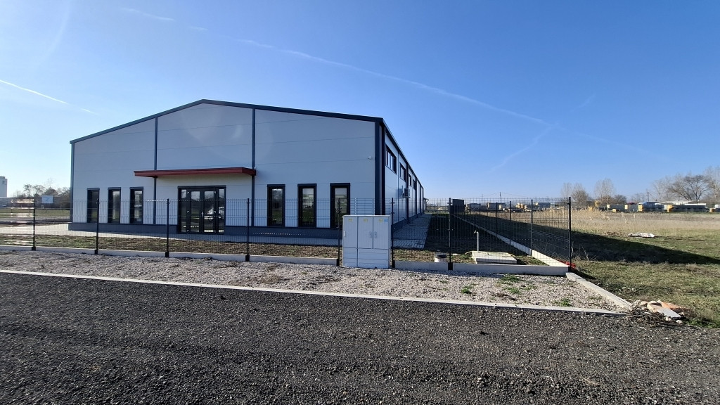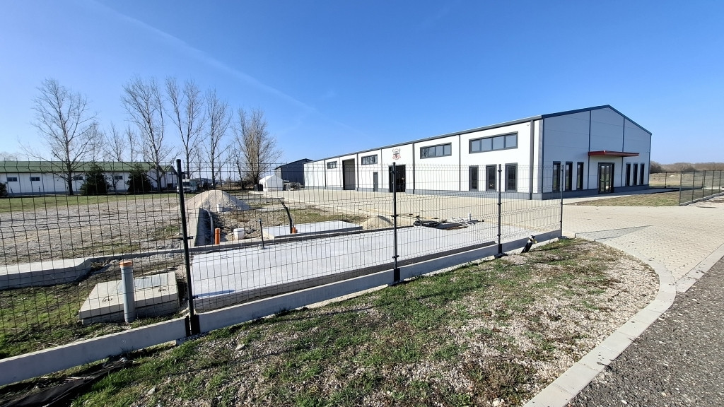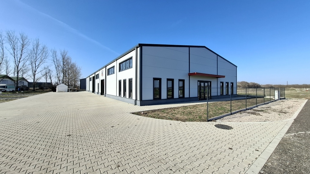 Szolnok ipari övezetében, az M4-es autóút közelében eladó 914 m²-es ipari csarnok 4 944 m²-es telken.