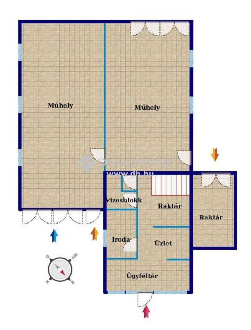 A főépület tégla építés, betonfödémes, hidegburkolattal teljesen ellátott üzlet és a hozzátartozó vizesblokk. Az épület 2 szintes, az emeleten raktár és iroda van kialakítva. Fűtése kombi gázkazánról megoldott.