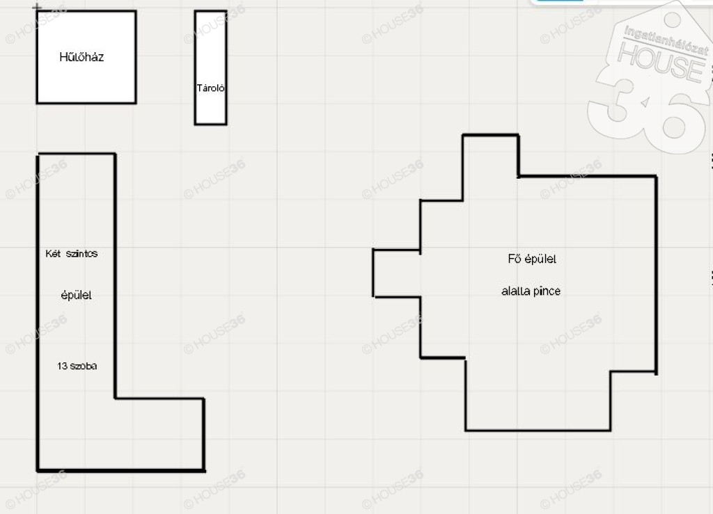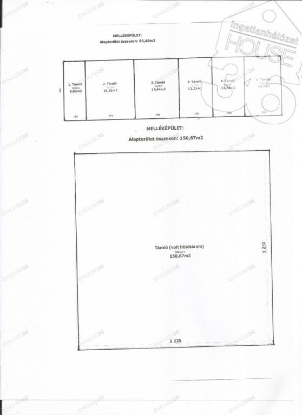 A telken található még egy 150 m2 alapterületű hűtőház.