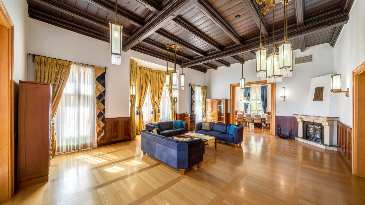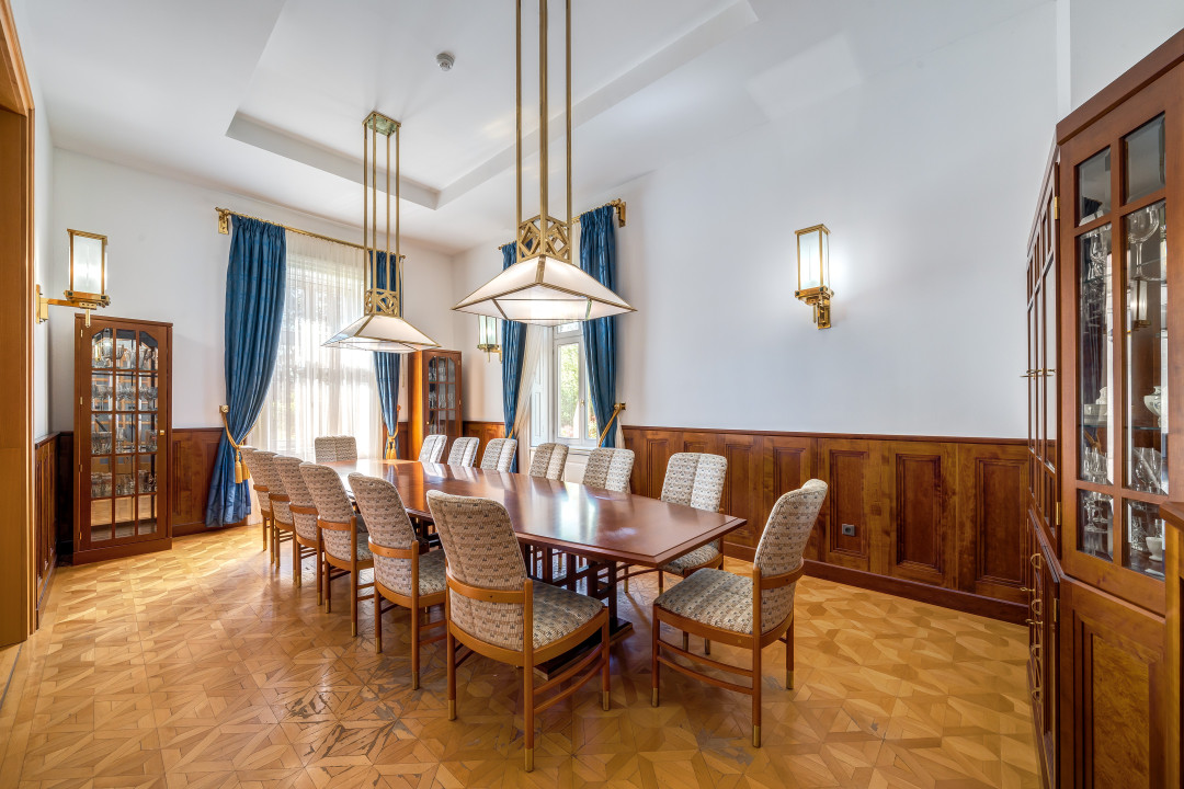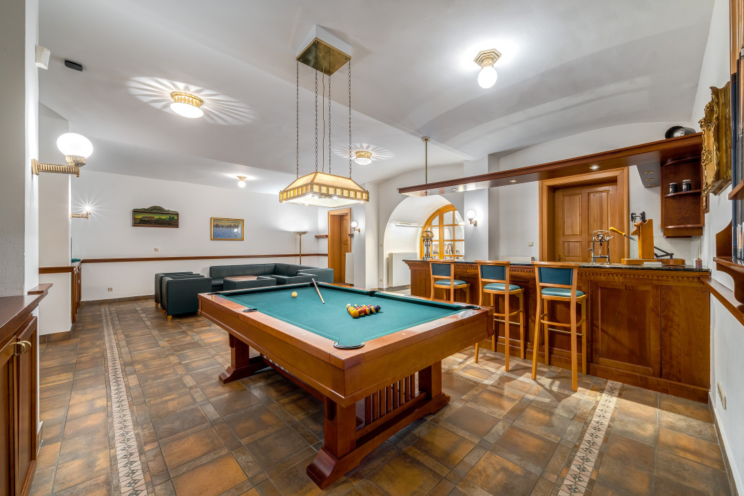 - Alsó szint: rendezvénytér biliárddal és bárral, nagy konyha (tálalólifttel), mosókonyha, 3 szoba fürdőkkel, tárolók
