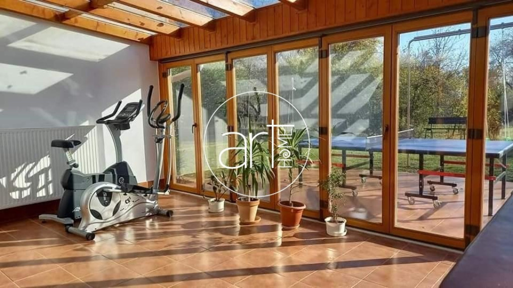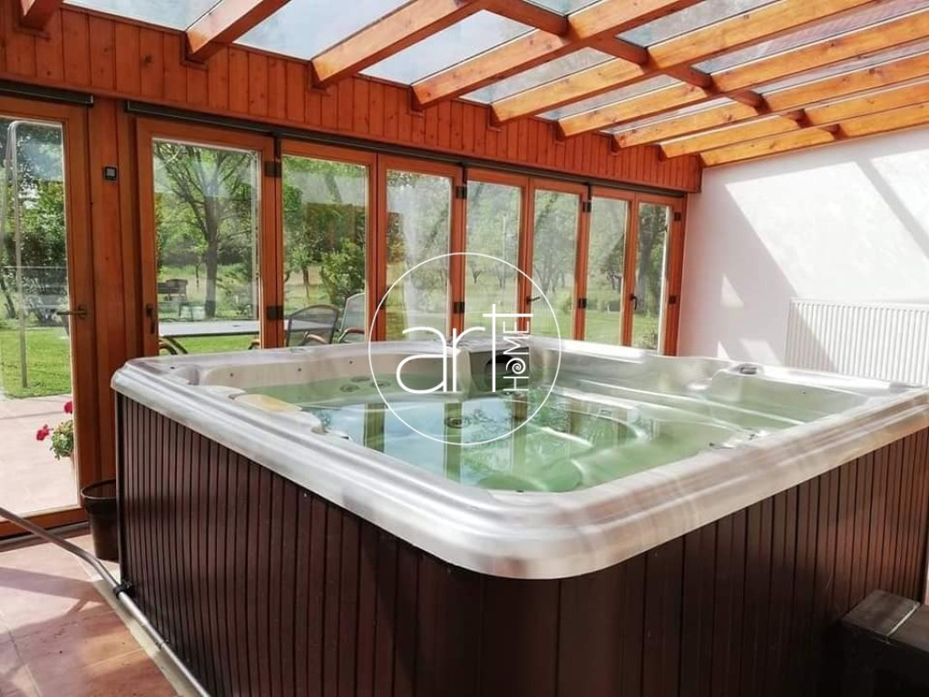 Az épület különlegessége a wellness részleg: 6 személyes jakuzzi, óriási szauna, Kneipp-kúra fürdő, zuhanyzó öltözővel. A kert felé teljesen eltolható üvegfal nyílik, amely egy teraszon keresztül kapcsolódik a csodás, zöld környezethez.