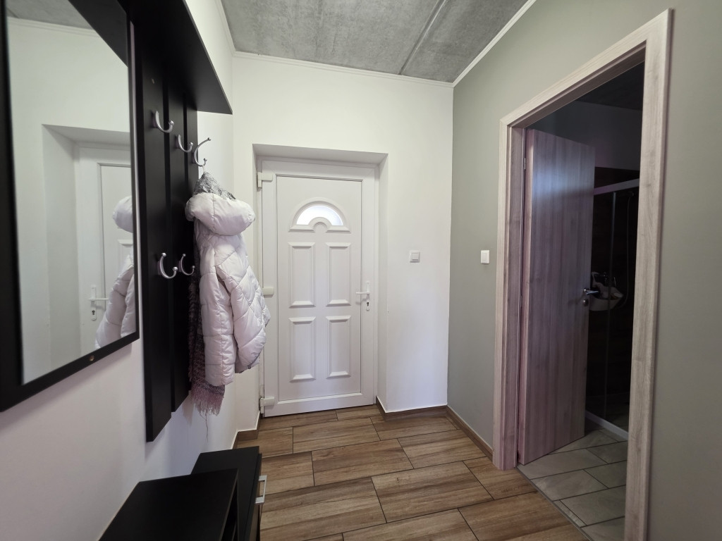A házban 4 db lakás eladó, 2 db a földszinten és 2 db az emeleten, jelenleg a választás lehetősége fenn áll. Az emeleti lakások hirdetési ára 38.500.000 Ft.