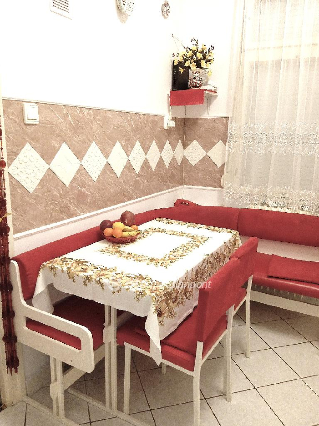 A lakásban történtek felújítások, a fürdő, a konyha a közlekedő, és a wc új burkolatot kapott.