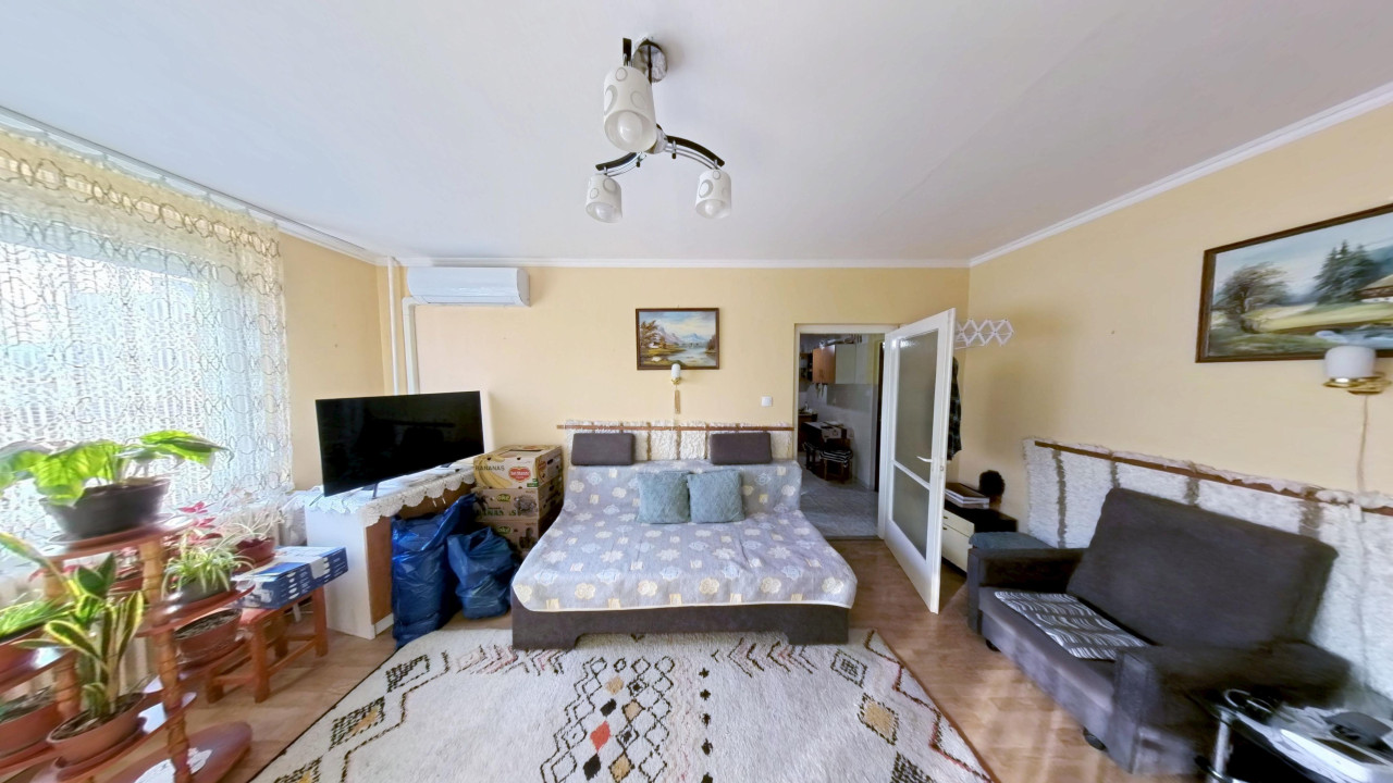 A bejárattal szemben a hálószoba van. A szobákból kitekintve REMEK PANORÁMÁBAN gyönyörködhetünk. Előtte, a közlekedőből nyílik az IGÉNYESEN FELÚJÍTOTT FÜRDŐSZOBA, melyet vadonatúj zuhanykabinnal szereltek fel.