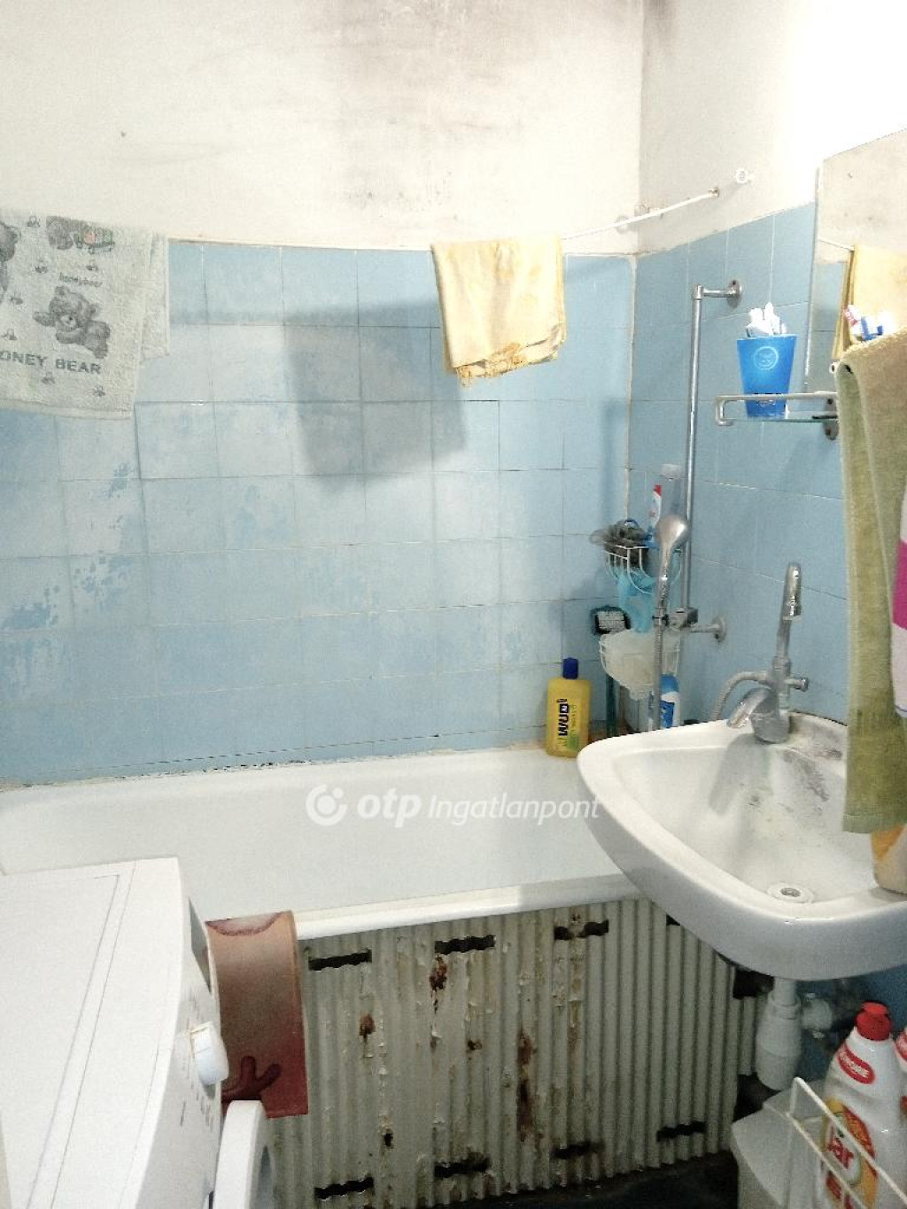 A teljes felújítást igénylő ingatlanban a nagy szoba, és az előszoba laminált padló burkolatot kapott, a többi burkolat, és a nyílászárók még az eredetiek.