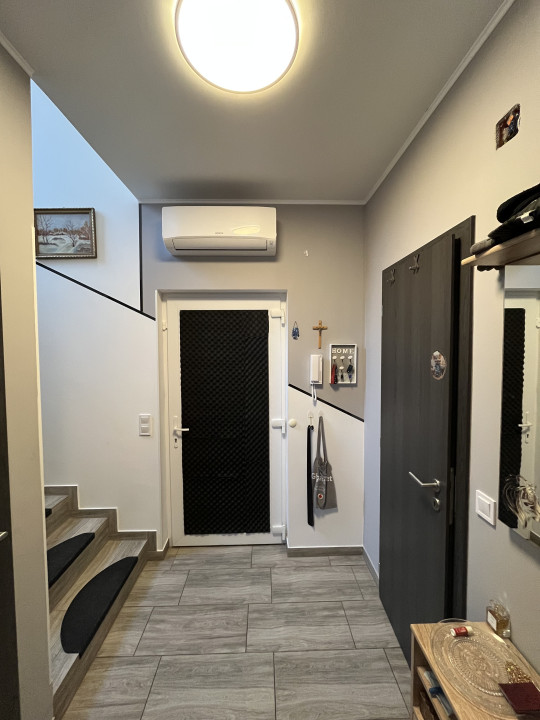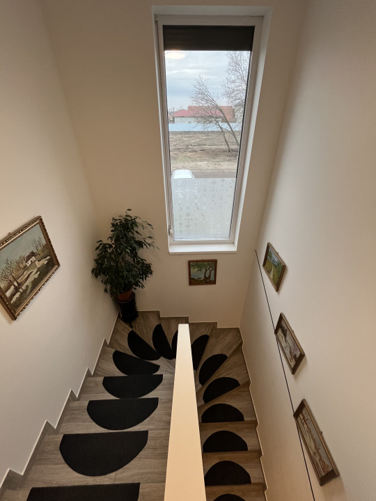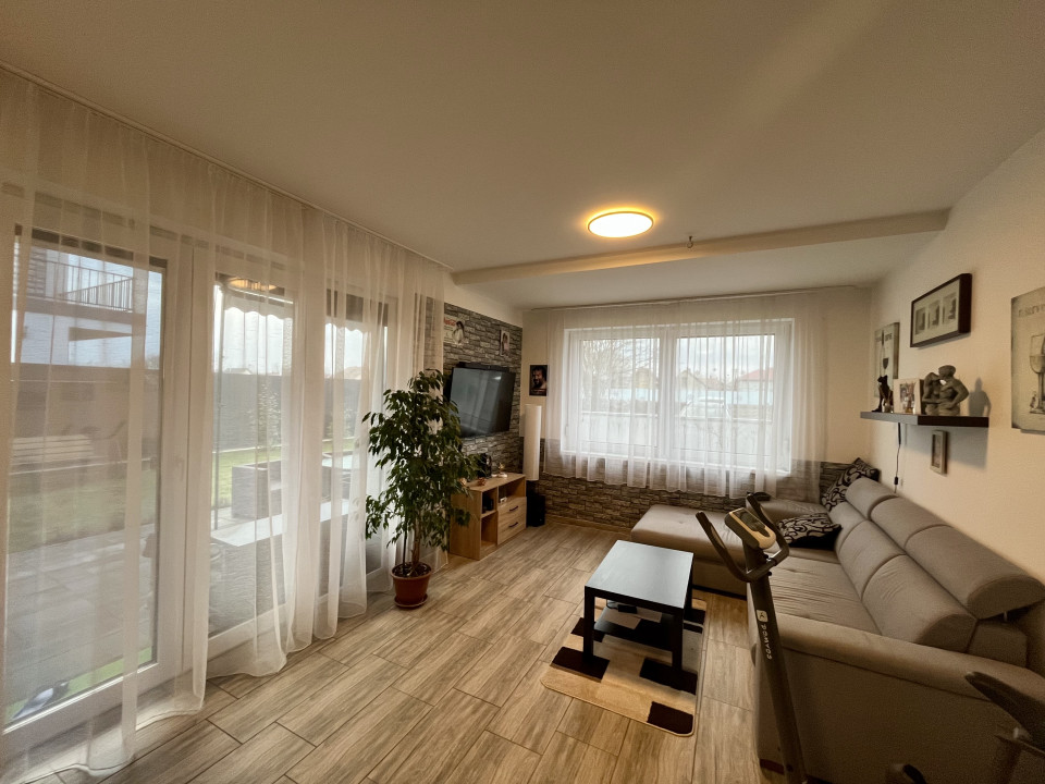 A déli fekvésű ingatlan egész nap fényárban úszik. A földszinten található letisztult előszoba, a tágas nappali–konyha–étkező, valamint egy modern, zuhanyzós fürdőszoba és tároló.