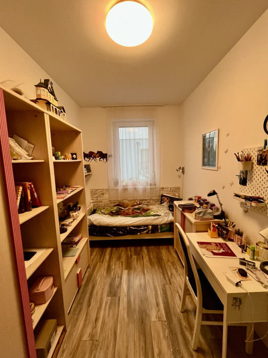 A lakáshoz közvetlenül a bejárat előtt kétállásos gépjármű-beálló tartozik.