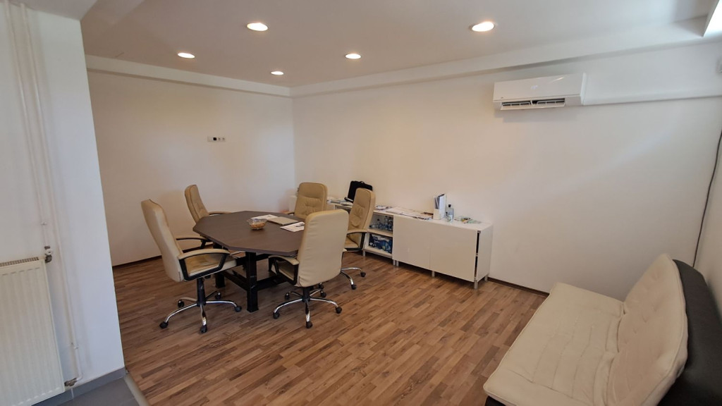 Fűtése sötét sugárzóval vegyes tüzeléssel, hűtése klímákkal megoldott.