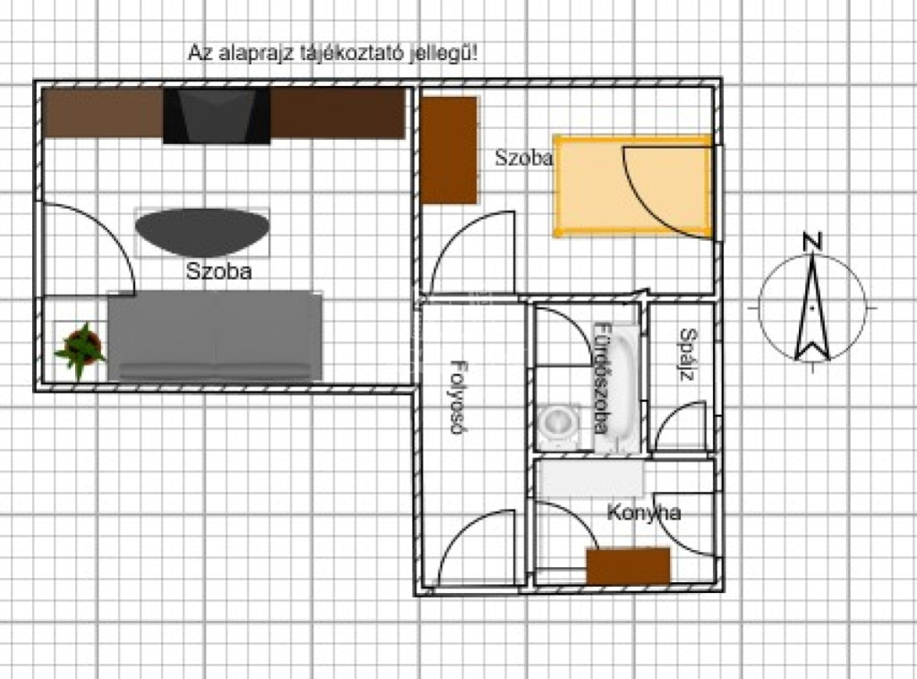 Az ingatlan két különálló szobával, konyhával, folyosóval, kádas fürdőszobával és spájzzal rendelkezik.