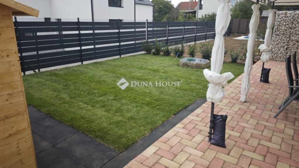 A kivitelezés része a parkosított udvar, valamint egy 6×3 méteres, 1,3 m mély medence, amely tovább növeli az ingatlan értékét és komfortját.