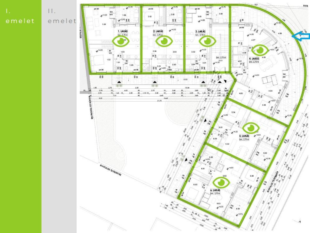 A beruházás keretében 40 és 155 m? közötti alapterületű, összesen 12 db lakás magas színvonalon megépülő, egész évben használható otthonként valósulnak meg, változatos, 7 és 64 m? közötti teraszokkal. A lakásokhoz opcionálisan, különböző méretű tárolók is választhatók.