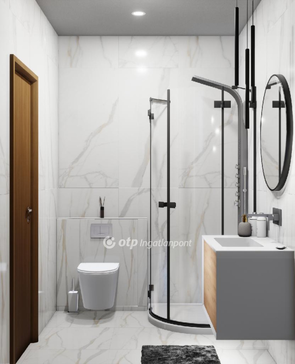Elrendezése: Előtér: 4,85 m2, nappali: 19,62 m2, konyha+étkező: 21,69 m2, szoba: 9,63 m2 , szoba: 9,49 m2 , szoba: 17,3 m2 , fürdőszoba 4,05 m2, fürdőszoba 2,7 m2 , terasz: 64,14 m2