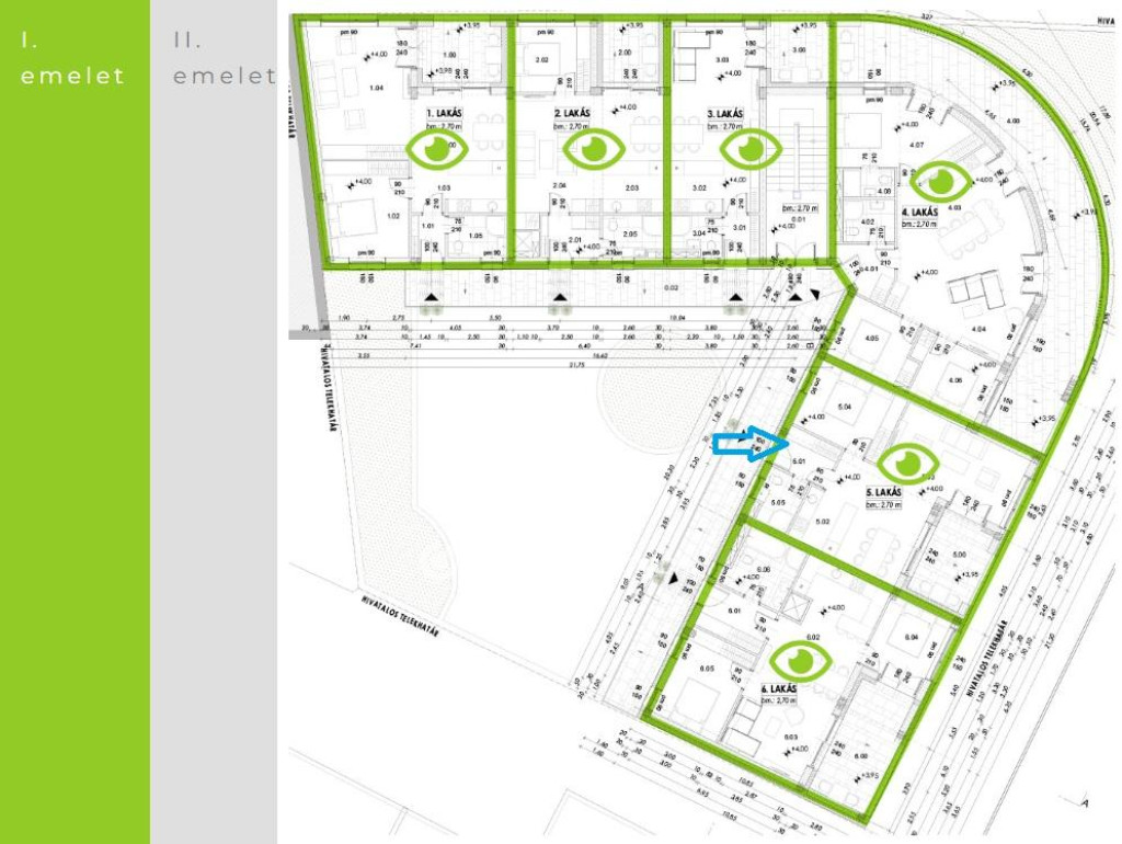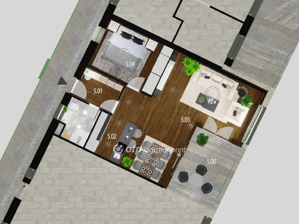 Ez a 57,9 m2-es I. emelet 5.lakás, amihez 10,08 m2 -es terasz tartozik.