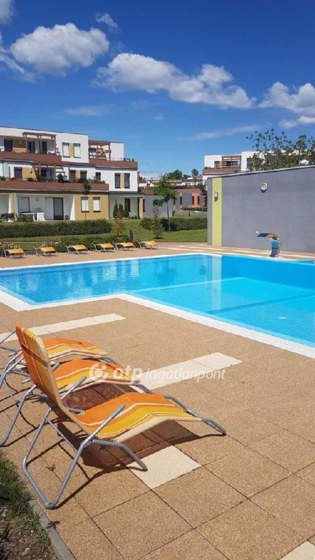 A 7800 m2-es, gondosan karbantartott zárt lakópark valódi üdülőhangulatot nyújt: