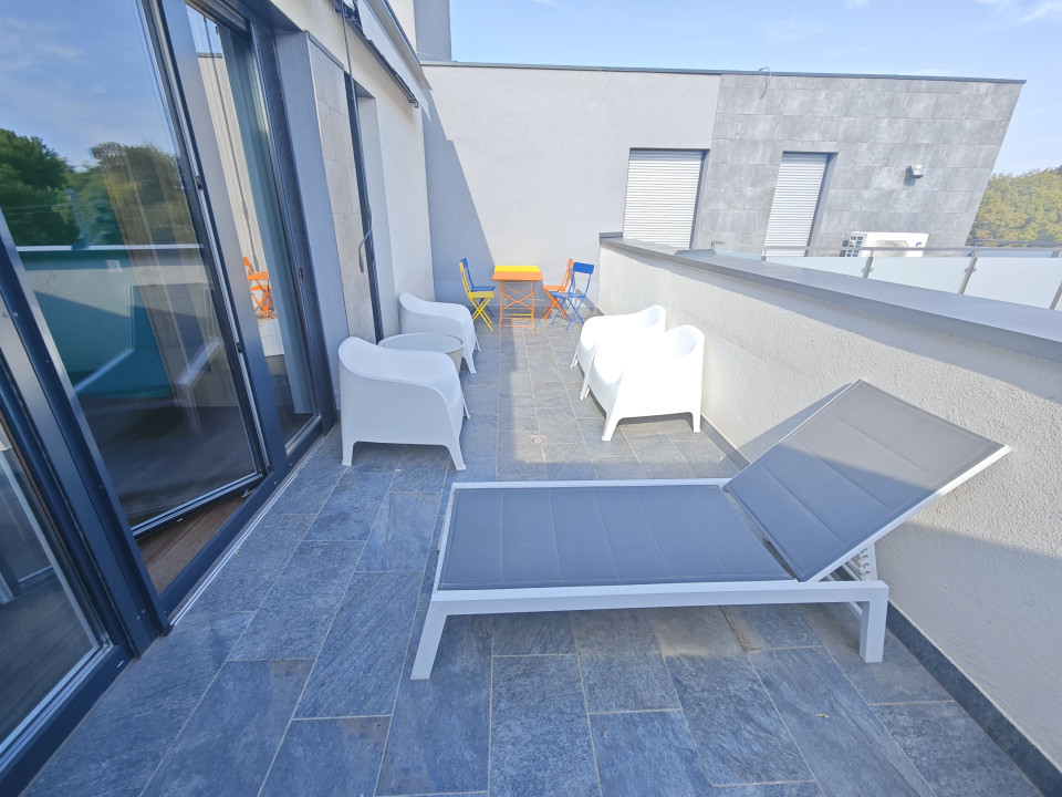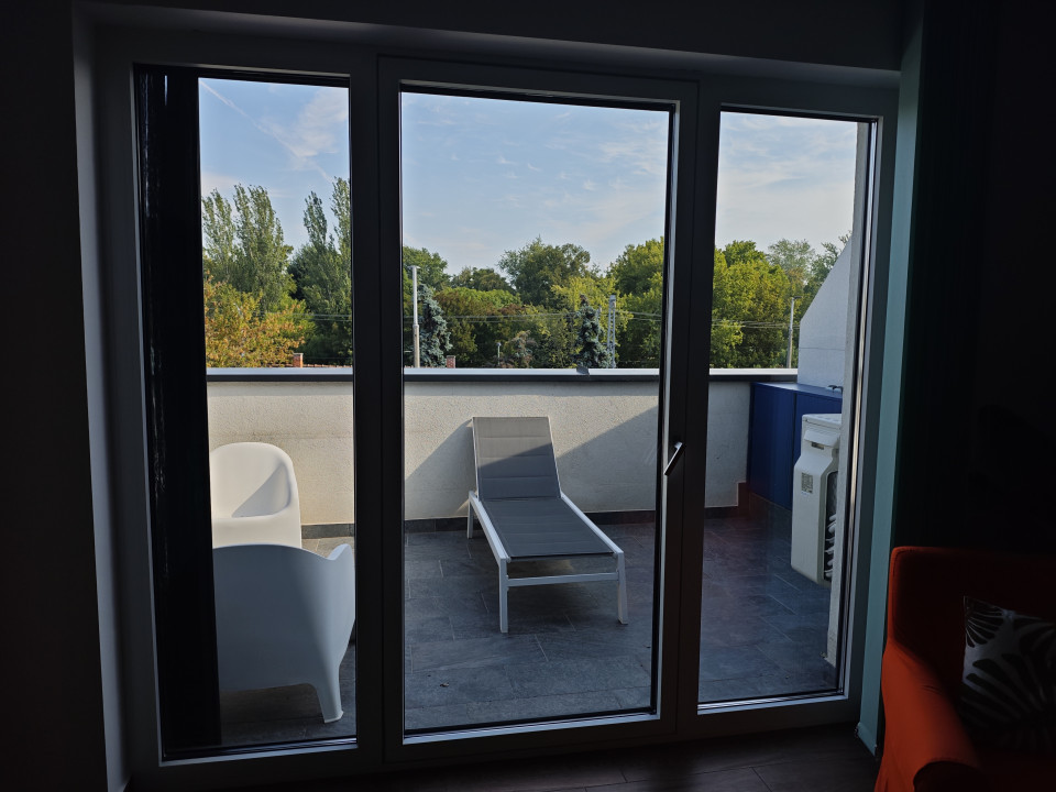 A 21 m2-es terasz a nappaliból és az egyik szobából is elérhető.