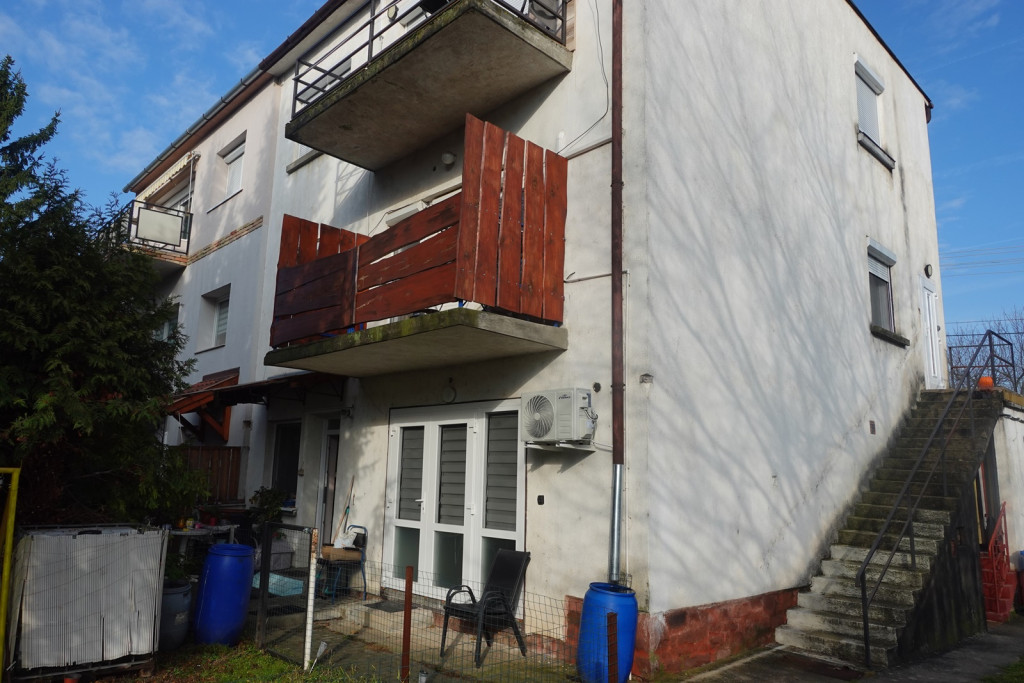 Az ingatlan egy első emeleti 61 m2-es és egy földszinti 30 m2-es külön álló lakásból áll. A lakások KÜLÖN MÉRŐÓRÁKKAL, KÜLÖN GÁZKAZÁNNAL rendelkeznek. A földszinti lakás egy konyha-étkezőből, egy szobából áll, melyhez tartozik még egy külön WC és egy zuhanyzós fürdőszoba. A szobában egy hűtő-fűtő klíma is rendelkezésre áll. A lakás előtt közvetlenül egy 5 m2-es terasz van. A fűtés gázkazán radiátorokkal.