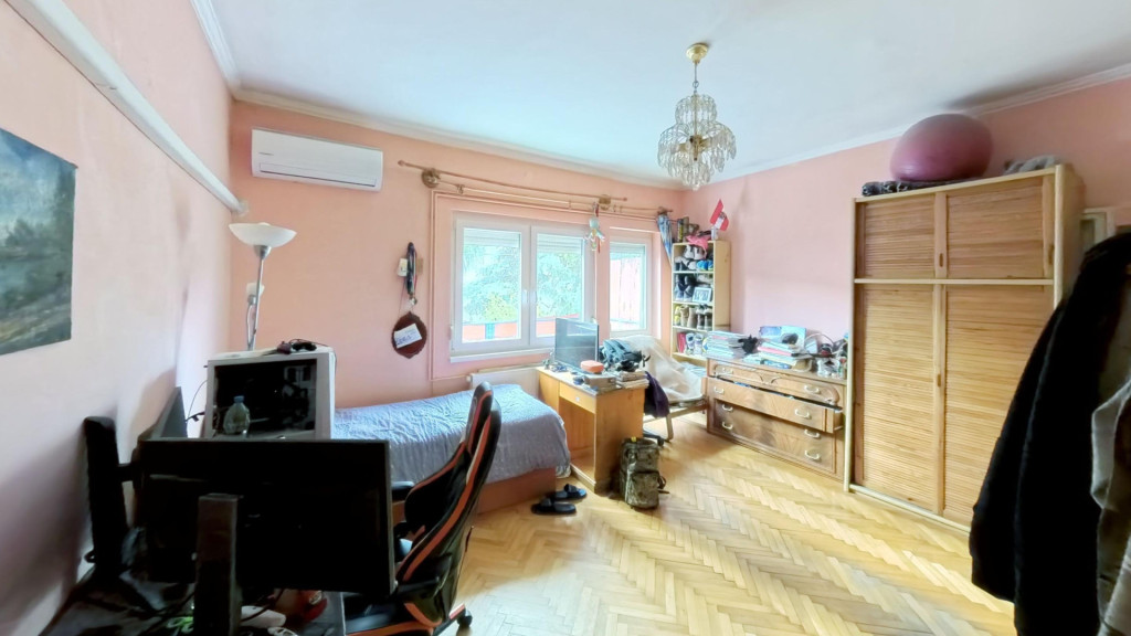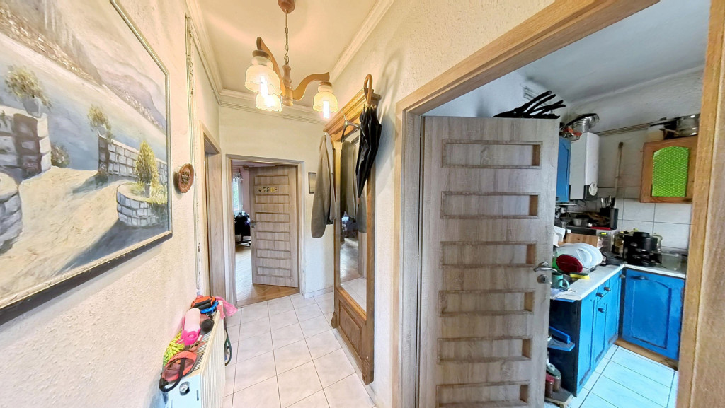 Az első emeleti lakásba egy ZÁRT LÉPCSŐHÁZON keresztül juthatunk fel. Belépve egy előtérbe érkezünk. Innen jobbra nyílik a konyha, melyhez egy kamra is tartozik. Vele szemben az egyik szoba, hűtő-fűtő klímával felszerelve, mellette egy nagyobb, tágasabb szoba van, melyről közvetlenül léphetünk ki a KERTRE NÉZŐ ERKÉLYRE. Itt is egy HŰTŐ-FŰTŐ klíma teszi komfortosabbá a lakást. Egy kis közlekedőn tovább haladva a külön WC, mellette a fürdőszoba található. A fürdőszoba mellet a harmadik szoba van.