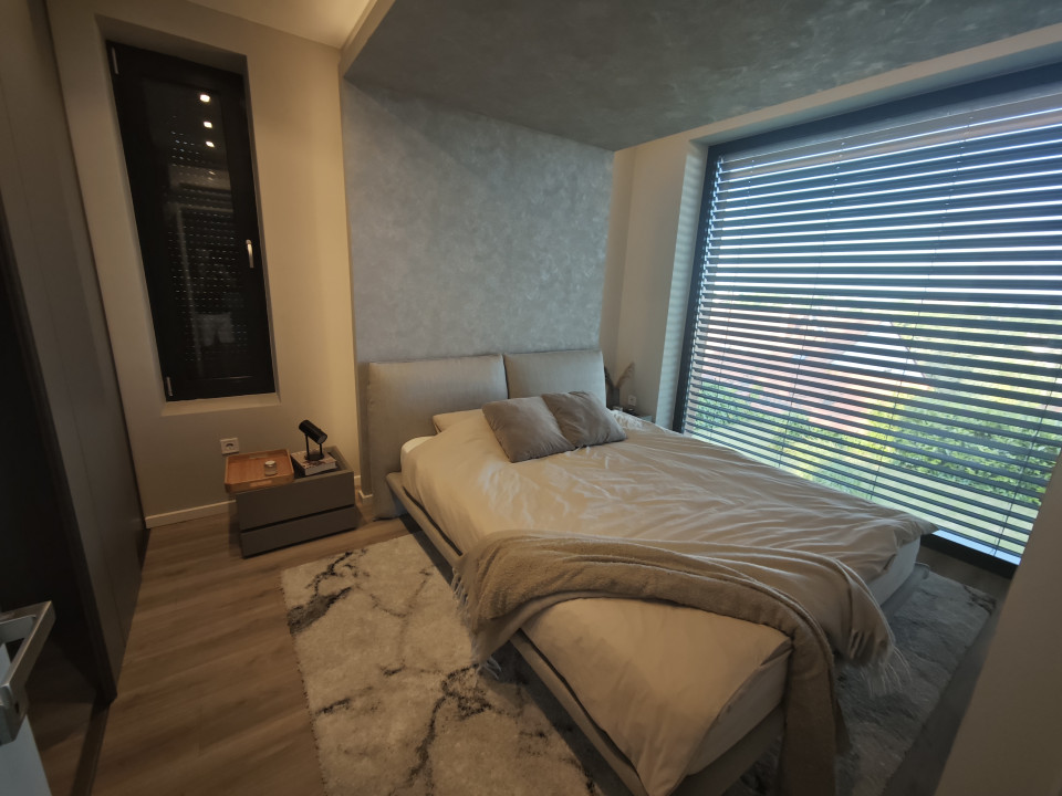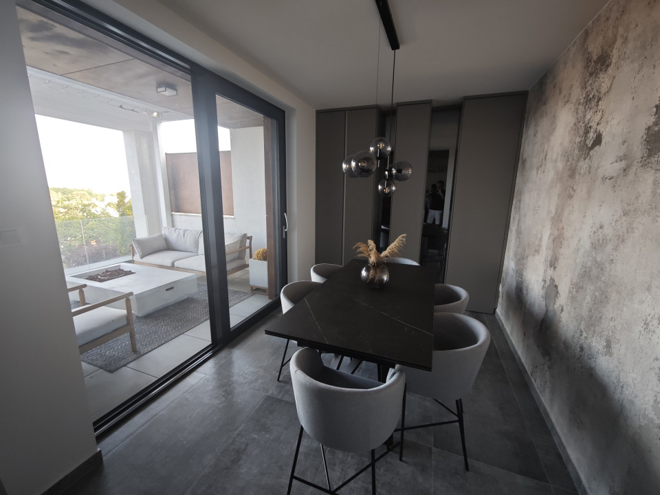 A 20 cm-es szigeteléssel ellátott ház prémium minőségű, három rétegű, alumínium nyílászárói, elektromos zsaluziával ellátottak.