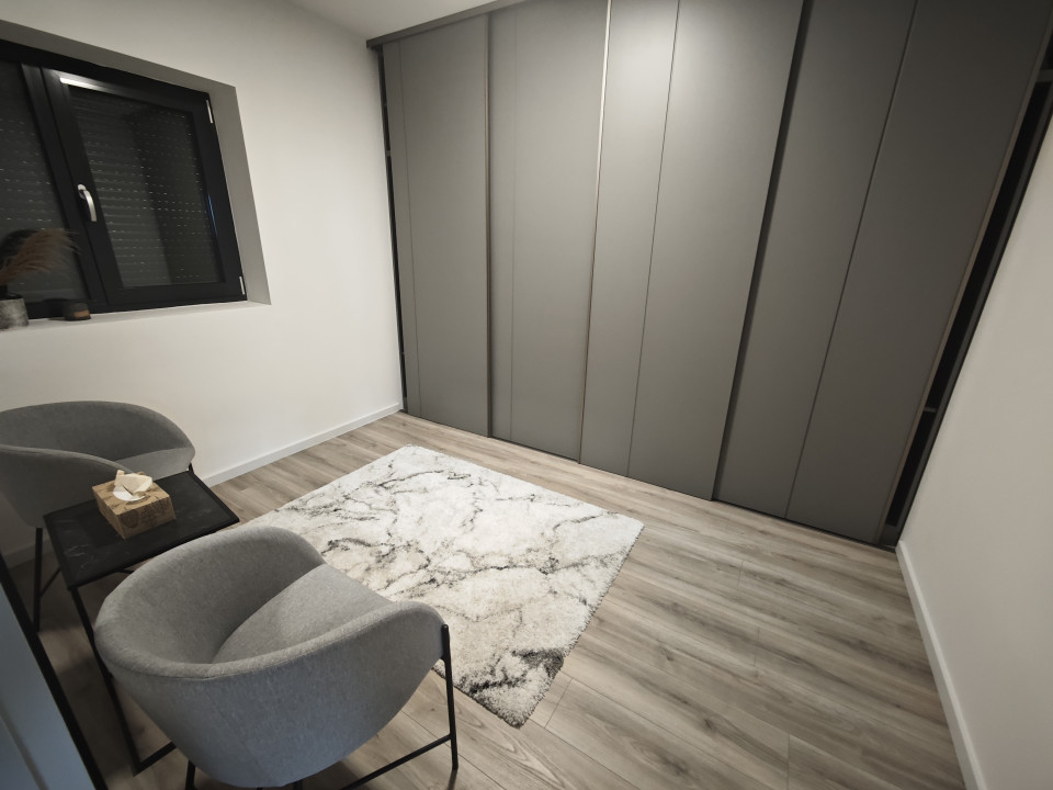 A magas színvonalon kivitelezett lakásban található teraszkapcsolattal rendelkező nappali-konyha-étkező, két hálószoba, fürdőszoba, előszoba, háztartási helyiség és WC.