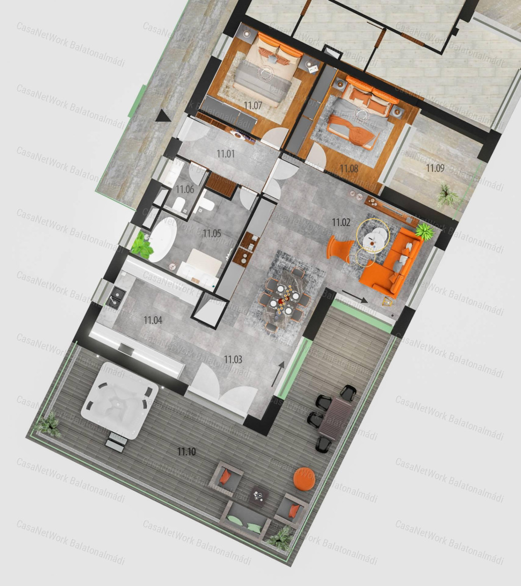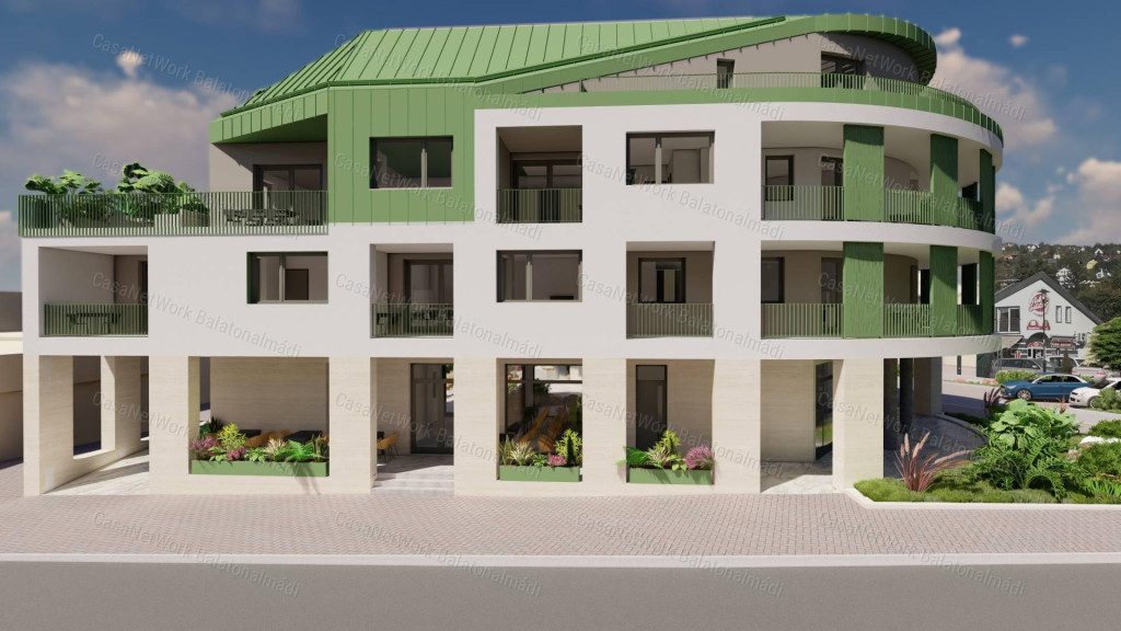 A CasaNetWork Balatonalmádi Ingatlaniroda eladásra kínálja az 1874-es számú, kivételes tulajdonságokkal bíró strandközeli, belvárosi luxuslakását Balatonalmádiban!A balatonalmádi új építésű lakás jellemzői:- 95,18 m2 lakótér + 8,75 m2 loggia + 58,53 m2 terasz- egyedülálló lokáció: Balatonalmádi központi részén épül meg az épület, nagyon közel minden fontos létesítményhez, mégis ősfás ligetek szomszédságában; a város lendülete szinkronban a természet nyugalmával- 2025 őszén veszi kezdetét a kivitelezés, a tervezett befejezés 2027.- a társasházban 12 lakás kerül kialakításra- óriási terasz, csodás panoráma, exkluzív környezet; a legfelső szint penthouse luxuslakása- az épület földszintje ad helyet a szintén eladásra kínált étteremnek és kávézónak, melyek központi elhelyezkedésüknek és színvonalas kivitelezésüknek köszönhetően a gasztronómiai élmények és a társasági élet meghatározó elemévé válhatnak Balatonalmádiban - kivételes alkalom: tradicionális balatoni vízparti nyaralóhely belvárosában új építésű lakást vásárolni - a Balaton északi oldalának leghosszabb partszakaszával rendelkező strandja, a Wesselényi strand 250 m.- a centrum új, értékálló lakóházának megalkotásakor a környezet kímélése kiemelt jelentőséggel bír- igényes kivitelezés, minőségi alapanyagok- hőszivattyúval hűtött-fűtött légterek, korszerű alumínium nyílászárók az ideális hang- és hőszigetelésért- optimális arányainak köszönhetően bármilyen stílusú igényes, modern otthon vagy nyaraló válhat belőle- kiváló lehetőség saját célra vagy befektetésnek Amennyiben a CasaNetWork Balatonalmádi Ingatlaniroda által hirdetett balatonalmádi lakás, vagy bármely a kínálatunkban található ingatlan felkeltette érdeklődését, kérem hívjon a megadott telefonszámon! Schultheisz Brigittavezető ingatlan-képviselő Vásárolna, de nincs rá keret? Kollégám díjmentes, banksemleges hitelügyintézéssel áll rendelkezésére.CasaNetWork - A civilizált ingatlanértékesítés artériája!