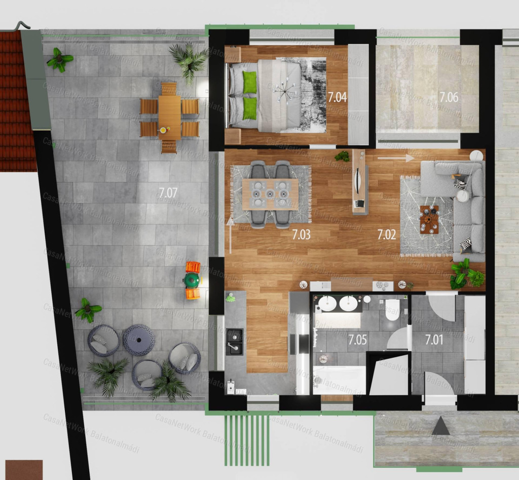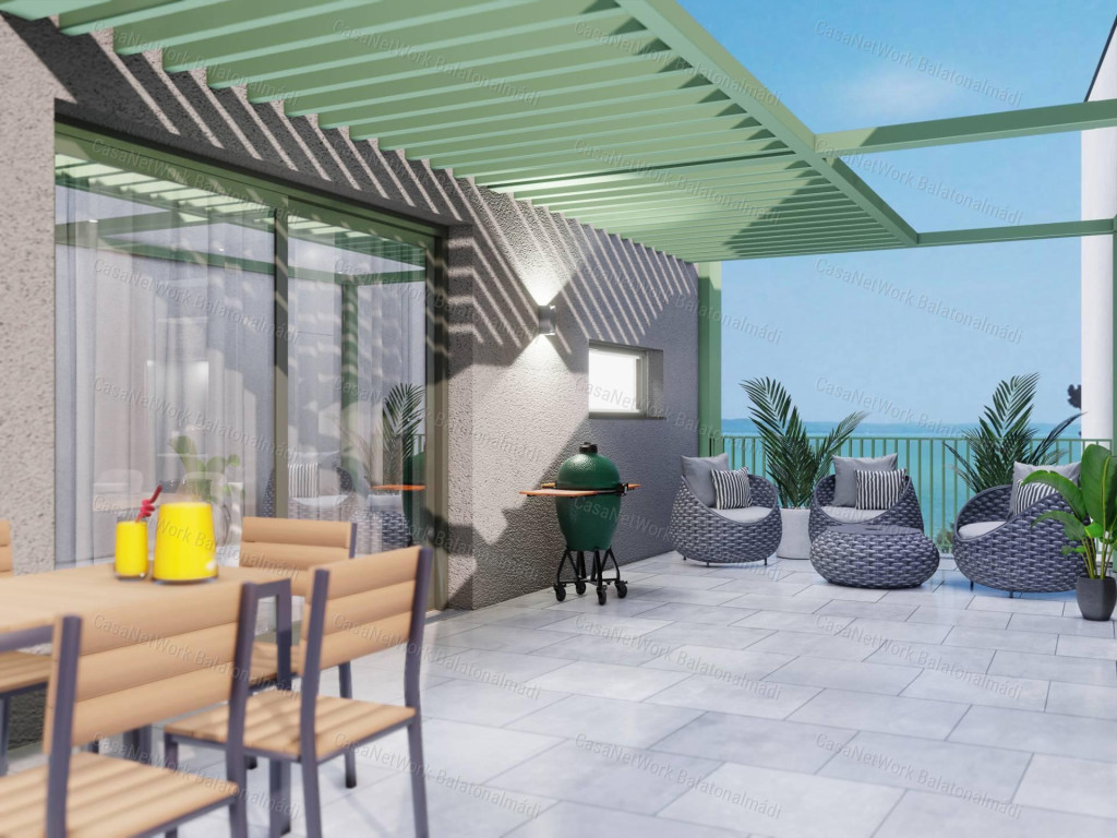 A CasaNetWork Balatonalmádi Ingatlaniroda eladásra kínálja az 1878-as számú, kivételes tulajdonságokkal bíró strandközeli, belvárosi luxuslakását Balatonalmádiban!A balatonalmádi új építésű lakás jellemzői:- 59,91 m2 lakótér + 8,6 m2 loggia + 45,91 m2 terasz- egyedülálló lokáció: Balatonalmádi központi részén épül meg az épület, nagyon közel minden fontos létesítményhez, mégis ősfás ligetek szomszédságában; a város lendülete szinkronban a természet nyugalmával- 2025 őszén veszi kezdetét a kivitelezés, a tervezett befejezés 2027- a társasházban 12 lakás kerül kialakításra- óriási terasz, csodás panoráma, exkluzív környezet ... a legfelső szint penthouse luxuslakása- az épület földszintje ad helyet a szintén eladásra kínált étteremnek és kávézónak, melyek központi elhelyezkedésüknek és színvonalas kivitelezésüknek köszönhetően a gasztronómiai élmények és a társasági élet meghatározó elemévé válhatnak Balatonalmádiban - kivételes alkalom: tradicionális balatoni vízparti nyaralóhely belvárosában új építésű lakást vásárolni - a Balaton északi oldalának leghosszabb partszakaszával rendelkező strandja, a Wesselényi strand 250 m.- a centrum új, értékálló lakóházának megalkotásakor a környezet kímélése kiemelt jelentőséggel bír- igényes kivitelezés, minőségi alapanyagok- hőszivattyúval hűtött-fűtött légterek, korszerű alumínium nyílászárók az ideális hang- és hőszigetelésért- optimális arányainak köszönhetően bármilyen stílusú igényes, modern otthon vagy nyaraló válhat belőle- kiváló lehetőség saját célra vagy befektetésnek Amennyiben a CasaNetWork Balatonalmádi Ingatlaniroda által hirdetett balatonalmádi lakás, vagy bármely a kínálatunkban található ingatlan felkeltette érdeklődését, kérem hívjon a megadott telefonszámon! Schultheisz Brigittavezető ingatlan-képviselő Vásárolna, de nincs rá keret? Kollégám díjmentes, banksemleges hitelügyintézéssel áll rendelkezésére.CasaNetWork - A civilizált ingatlanértékesítés artériája!
