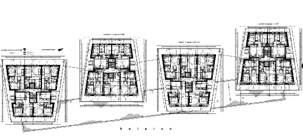 A projektben négy különálló, négyszintes épület épül ahol a második és harmadik emeletről teljes balatoni panoráma tárul elénk.