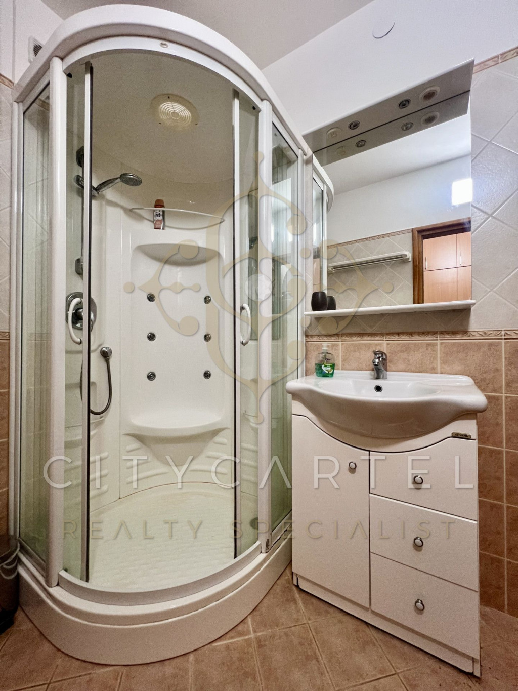 Beosztását tekintve egy amerikai konyhás nappali + étkező egy légtérben, egy hálószoba, egy WC-s, zuhanyzós fürdőszoba, egy előtér és egy panorámás erkély került benne kialakításra.