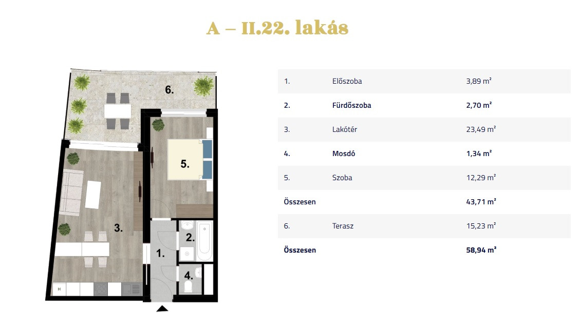 A jellemzően 50 – 70 illetve penthouse szinteken 70-150 nm-es lakóegységeket tartalmazó két társasházi épület szabadon állóan, a Balaton és a táj látványára fókuszálva került telepítésre, fő attrakcióként a tó és a páratlan panoráma felé nyíló akadálytalan kilátással. Épületenként 4 db tágas, világos lépcsőházzal 4 fogatos elrendezéssel szintenként 8, három lakószinten összesen 24 lakóegység található. A penthouse szinten még két lakóhegység található így egy épületben összesen 26 lakás van. Mindkét épület azonos elrendezésű, az alattuk kialakított terem garázs 60 férőhelyes.