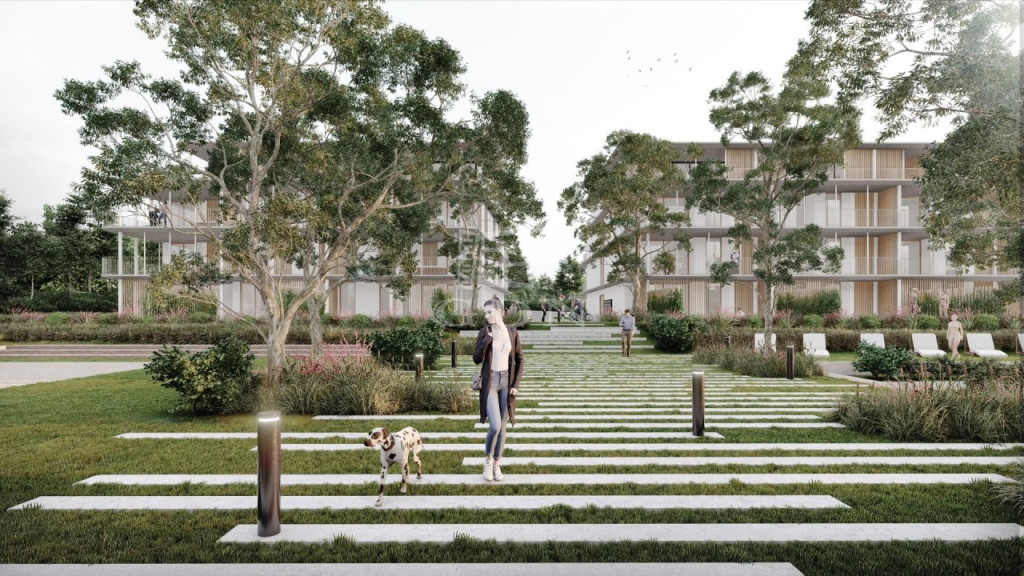 A lakásokhoz mindegyik szárnyon burkolt kialakítású lapos tetős teraszok készülnek. A földszinti lakásokhoz a teraszok mellett magánhasználatú kertrészek is csatlakoznak, a harmadik emeleten pedig épületszárnyanként 2-2 lakáshoz egy saját használatú zöldtetős tetőterasz is kapcsolódik. Zöldmezős beruházás, de a városépítészeti koncepció szerint a területre egy többemeletes, társasházas építészeti környezet lesz jellemző, amibe a tervezett épület is illeszkedik.