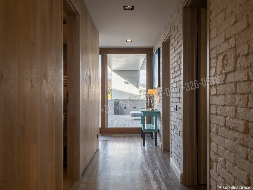 Nappali étkezővel (27,3 nm), 3 külön nyíló hálószoba (16,5 nm; 15,2 nm; 14,8 nm-es háló és gardrób), konyha (6 nm), előszoba (13,2 nm), 2 zuhanyzós fürdőszoba wc-vel (5,6 nm és 4,8 nm).