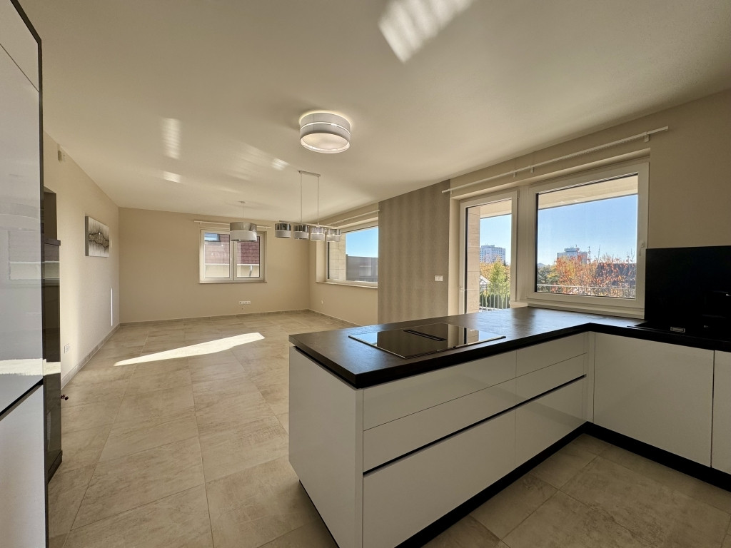 A lakásban tágas amerikai konyhás nappali, 3 hálószoba, fürdőszoba, WC, valamint egy gardrób található.