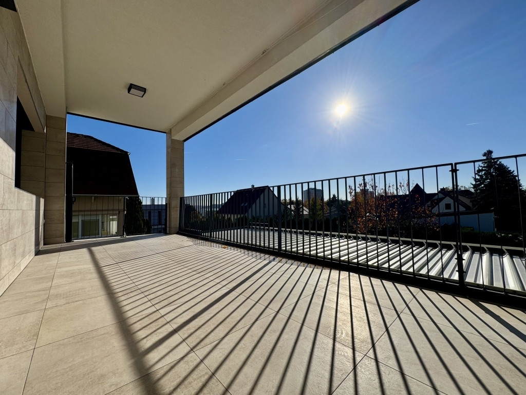 A társasház 400 m2 telken helyezkedik el, a lakás 110 m2 lakótérrel, 30 m2 fedett terasszal.