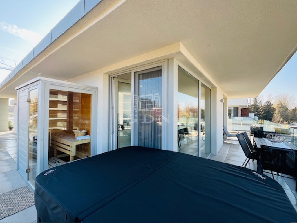 A lakás igazi kuriózum: 360°-os körpanorámás terasz, lenyűgöző Balatonra néző kilátás, hatalmas üvegfelületek és világos, tágas terek jellemzik. A kivitelezés során a legmodernebb anyagfelhasználás és megoldások kerültek beépítésre, így egy minden igényt kielégítő luxus környezetet kap – legyen szó állandó otthonról, nyaralóról vagy egy kimagaslóan értékálló befektetésről.