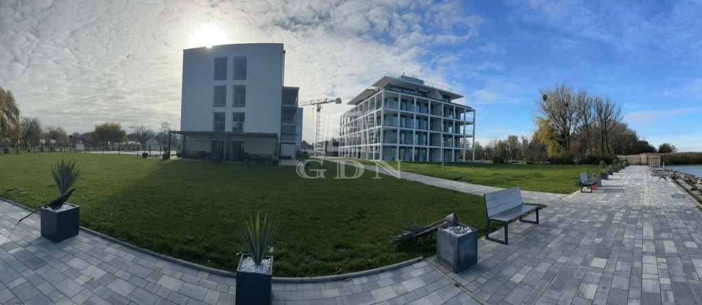 Balatonmáriafürdő központi részén, körbekerített parkosított telken, saját partszakasszal rendelkező lakóparkban, első emeleti,