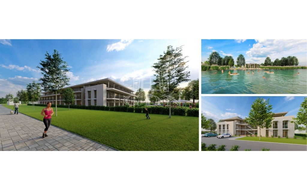Balatonmáriafürdőn, közvetlenül a Balaton parton, modern formai világban tervezett, a korszerűség és elegancia mellett, minőségi, illetve időtálló anyagfelhasználás tekintetében, vegyes rendeltetésű lakások, 2026 átadással.