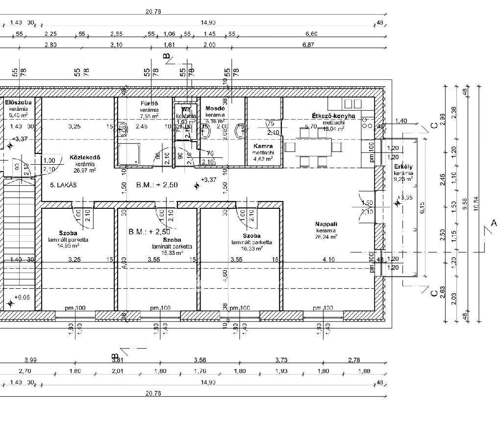 A lakás az alábbi helyiségekkel rendelkezik: amerikai konyhás nappali, tágas előszoba és folyosó, 3 hálószoba, fürdőszoba, kamra
