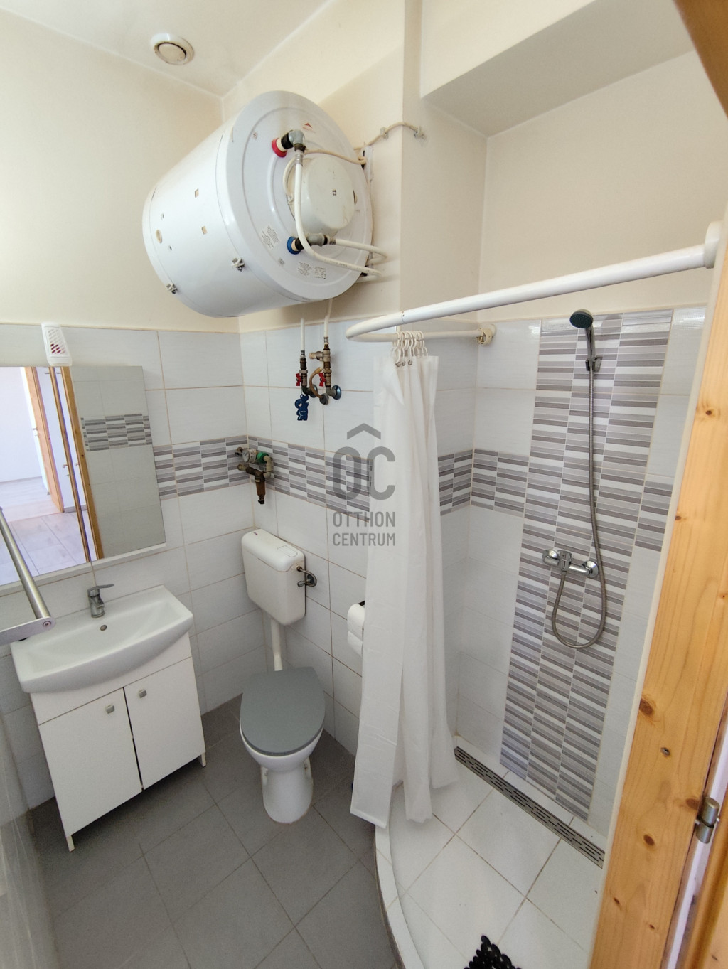 Belépve egy légtérben találjuk a tágas konyhát és az előszobát. Innen nyílik a 2 szoba és az épített zuhanyzós, kényelmesen használható fürdőszoba is.