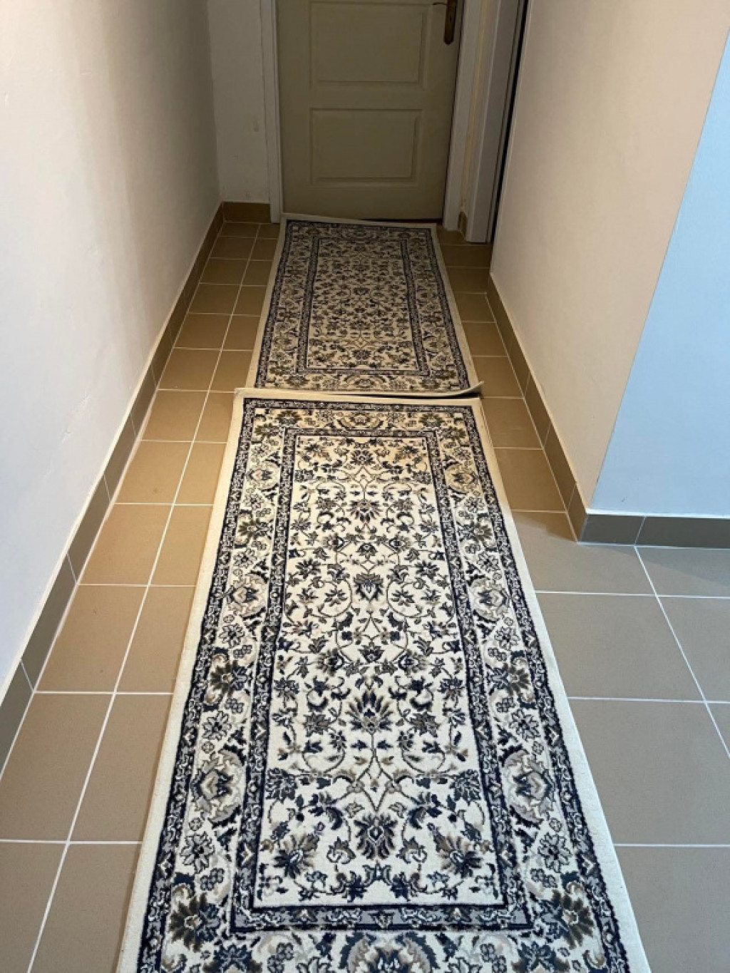 A szoba burkolata laminált parketta, a fürdőszoba, konyha és közlekedő járólapos.
