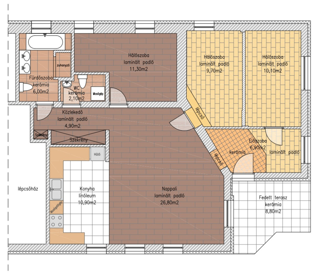 - külön WC, ahol a mosó- és szárítógép is helyet kapott