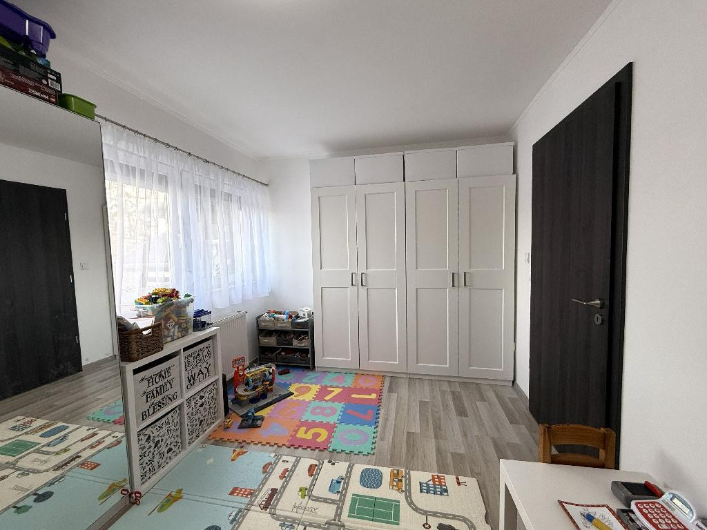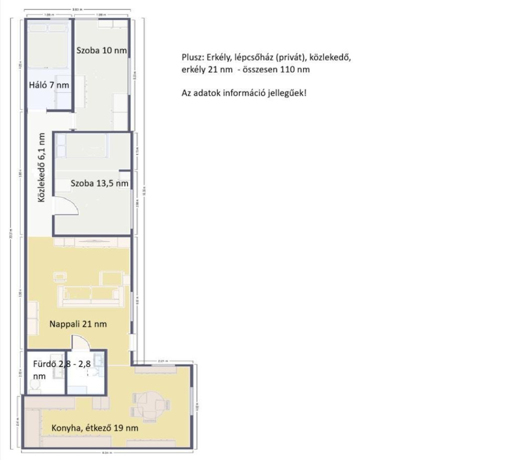 Az ingatlan elosztása kiváló, nappali, három külön nyíló szoba, külön konyha étkezővel, két fürdőszoba WC-vel, valamint közlekedő helyiségek kerültek kialakításra. A lakáshoz tartozik egy 8 nm erkély és egy körülbelül 40 nm saját udvarrész is.