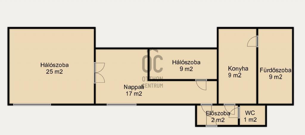 - A lakás 2 szobás, 72 m²-es, magasföldszinti.