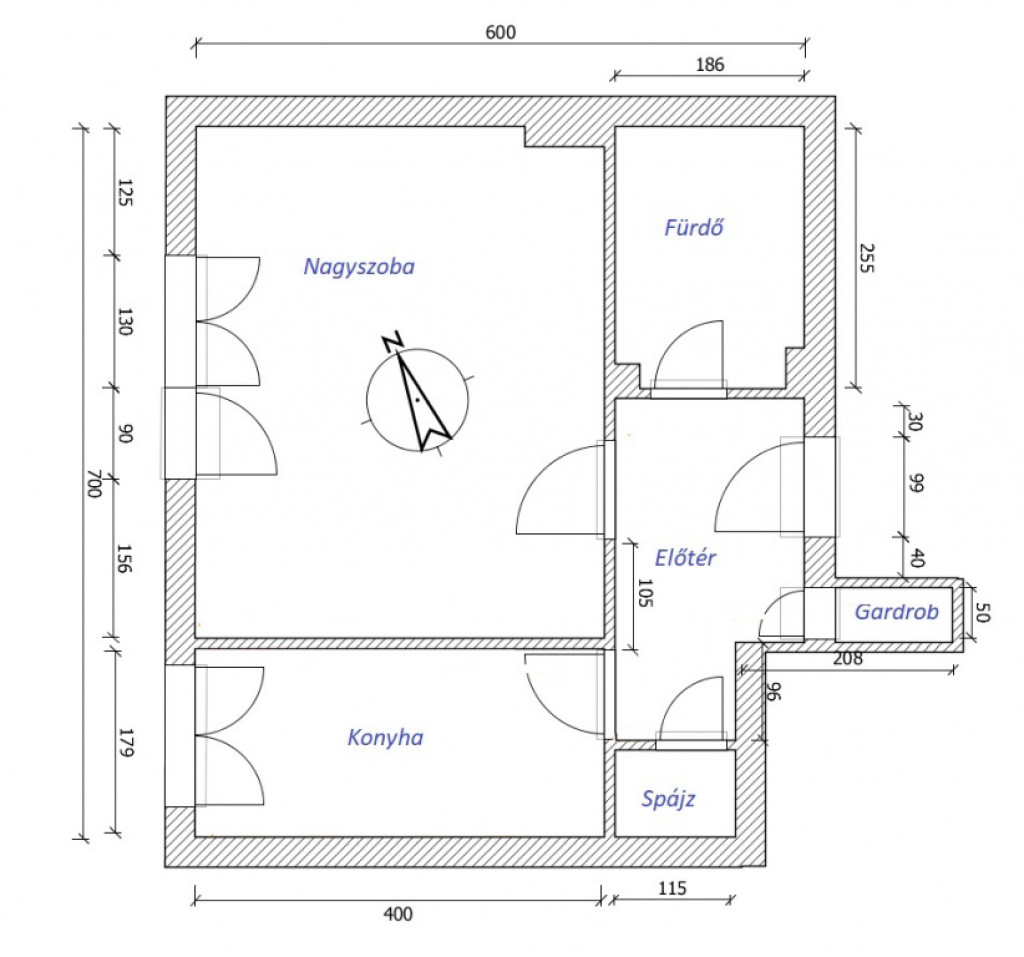 Az ingatlan állapota jó. Elrendezése most is jó, egy tágas szobája van, a konyhához kamra tartozik. Esetleges átalakítás után az ablakos konyhából akár hálószoba is kialakítható.