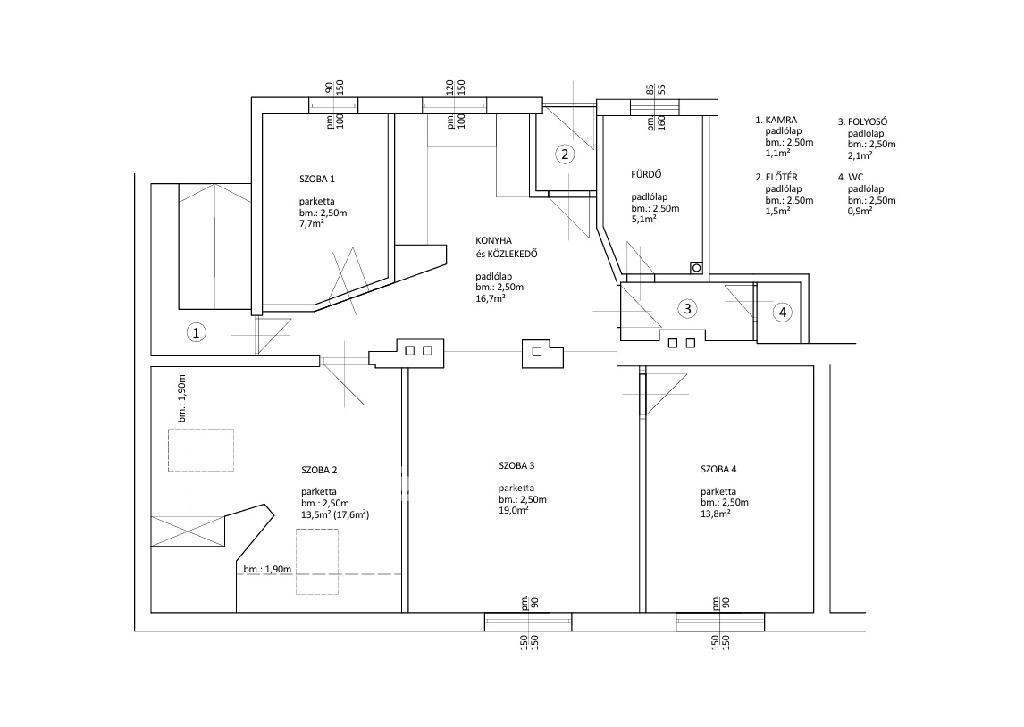 Három külön nyíló szoba (17,6 m2, 13,8 m2 és 7,7 m2), ideális gyerekszobának, hálónak vagy dolgozószobának.