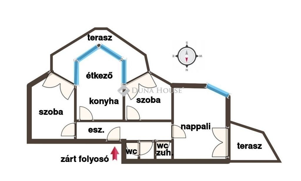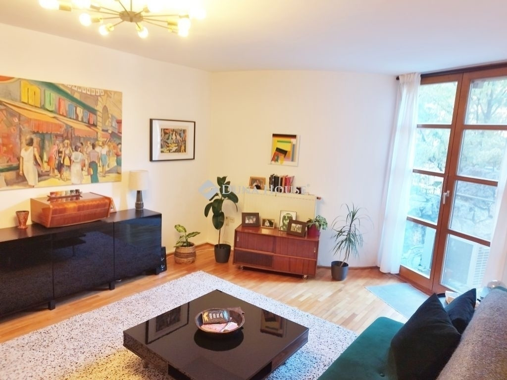 Nagy alapterületű, három szobás, konyha-étkezős, dupla teraszos, belső kertre néző déli tájolású lakás eladó.