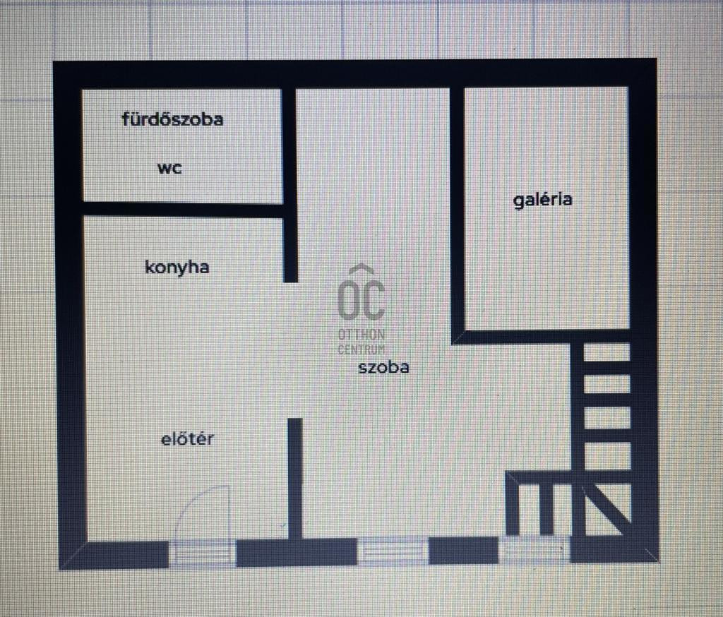 - A lakás egy tágas, galériás szobából, külön konyhából, valamint fürdőszoba + wc-ből áll.