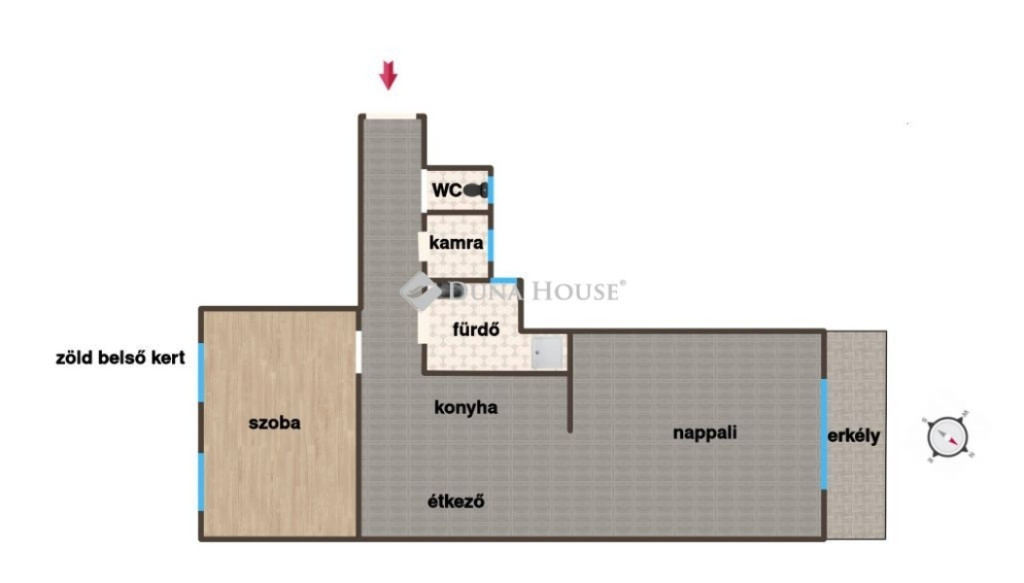 Első emelet, jól megközelíthető sarokelhelyezkedés, külön WC, praktikus alaprajz reprezentatív, mégis barátságos térrel.