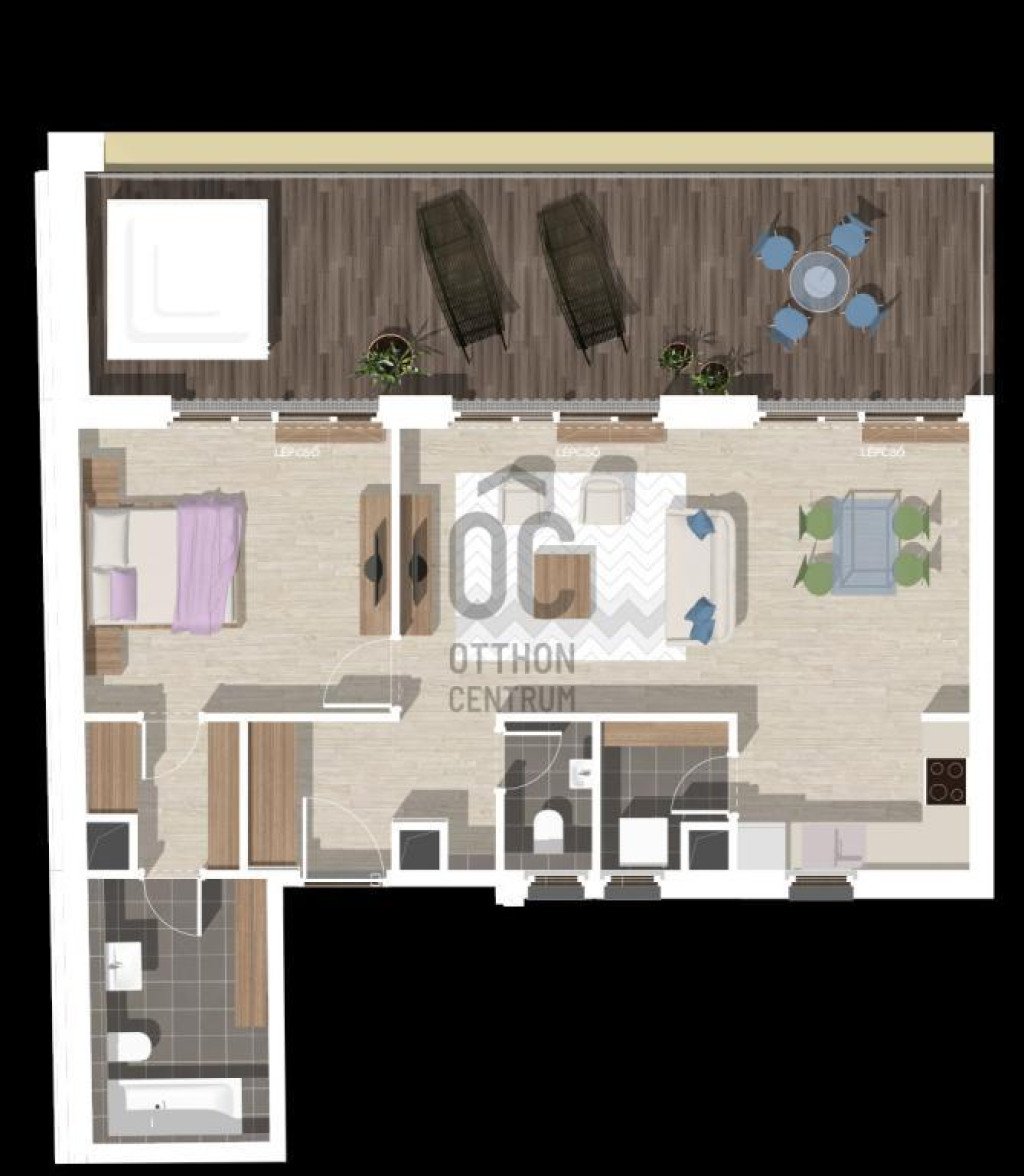 Lakás: 65,59 nm + 31,84nm terasz , 2 szoba