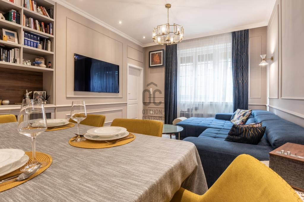 - Lakberendező tervei alapján, magas minőségű anyagok használatával, a nagypolgári stílusjegyeket megtartva, TELJESKÖRŰEN FELÚJÍTOTT otthon.
