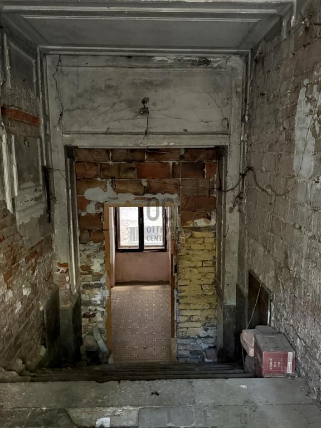 Utcafrontról nézve félszuterén, kisebb ablakai vannak, viszont egy a teljes nagy kapus bejárat miatt a felújított lakáson kívül számításba vehető különböző funkciókra alkalmas üzlethelyiség.